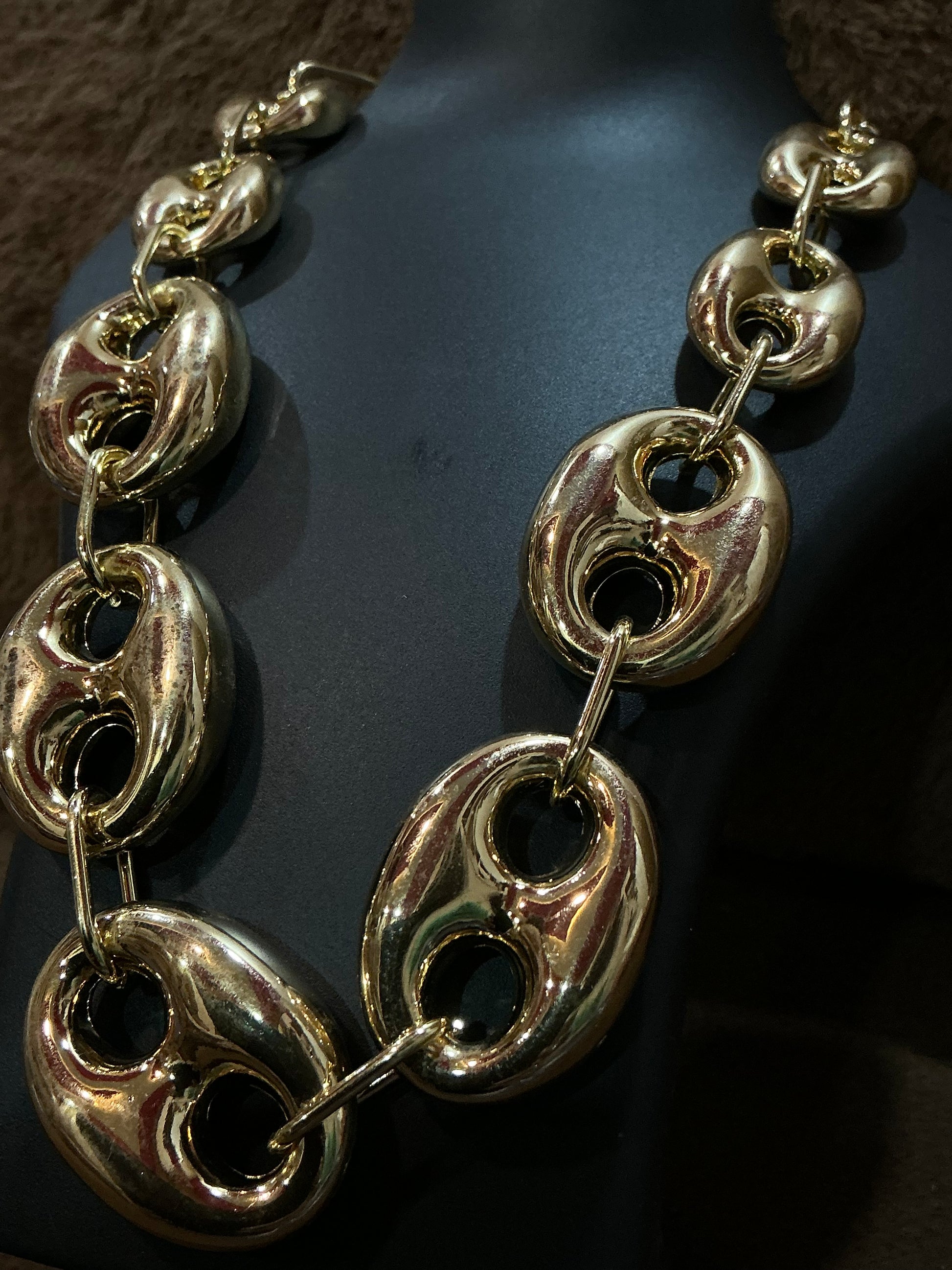 Sculpted links and a radiant metallic shine make it feel like wearable art — designed for bold queens who don’t play small.