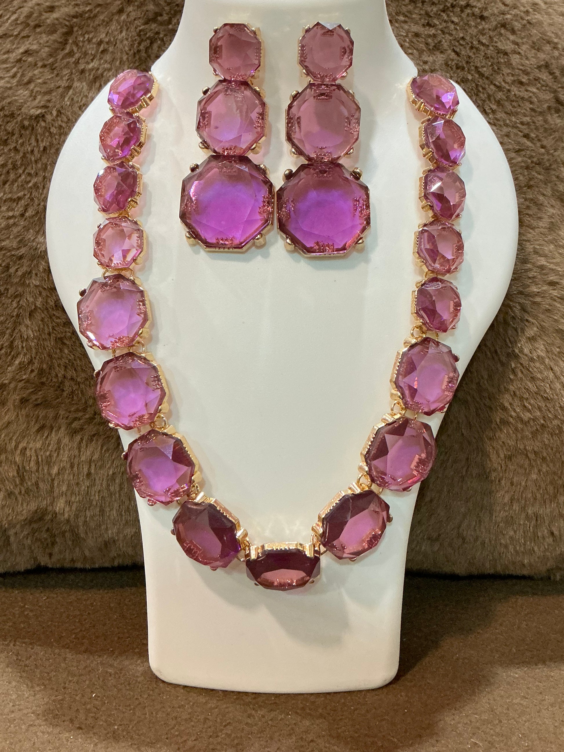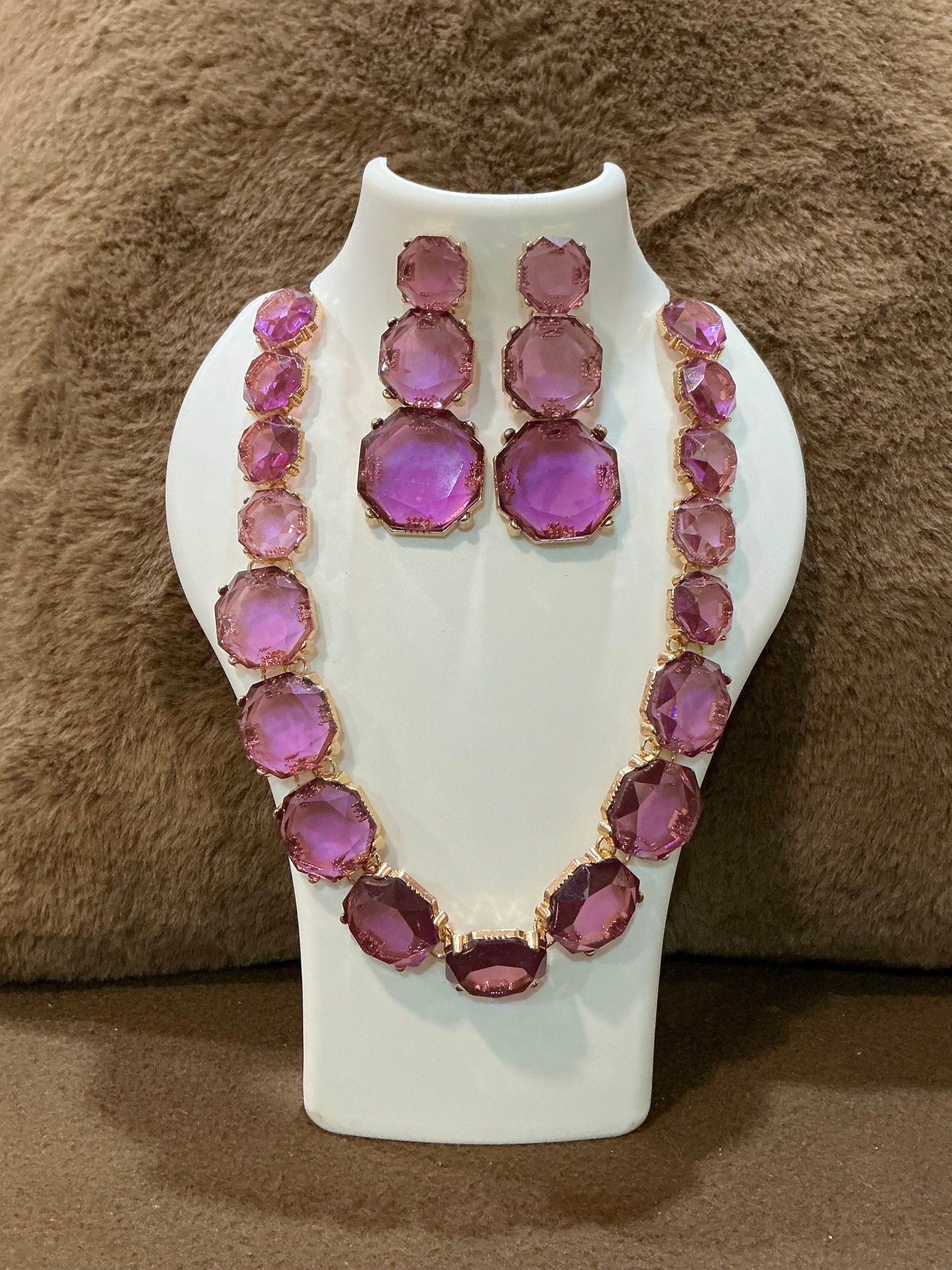 Royal Amethyst Shine – Purple Stone Necklace & Earrings Set