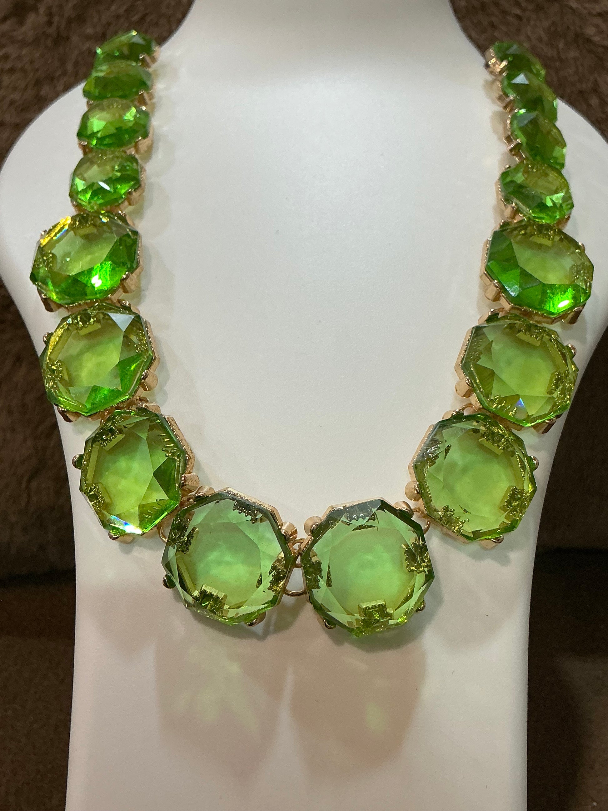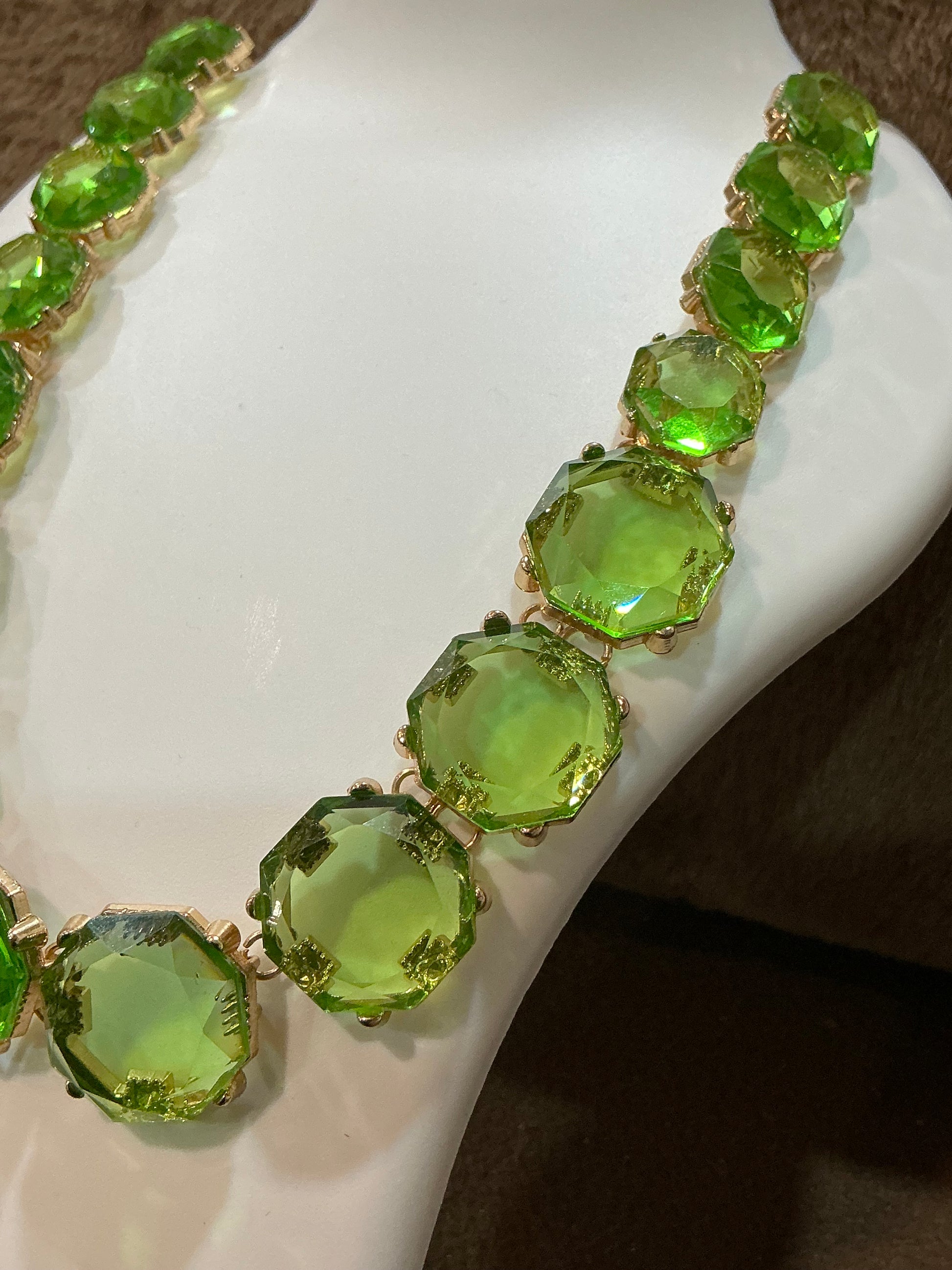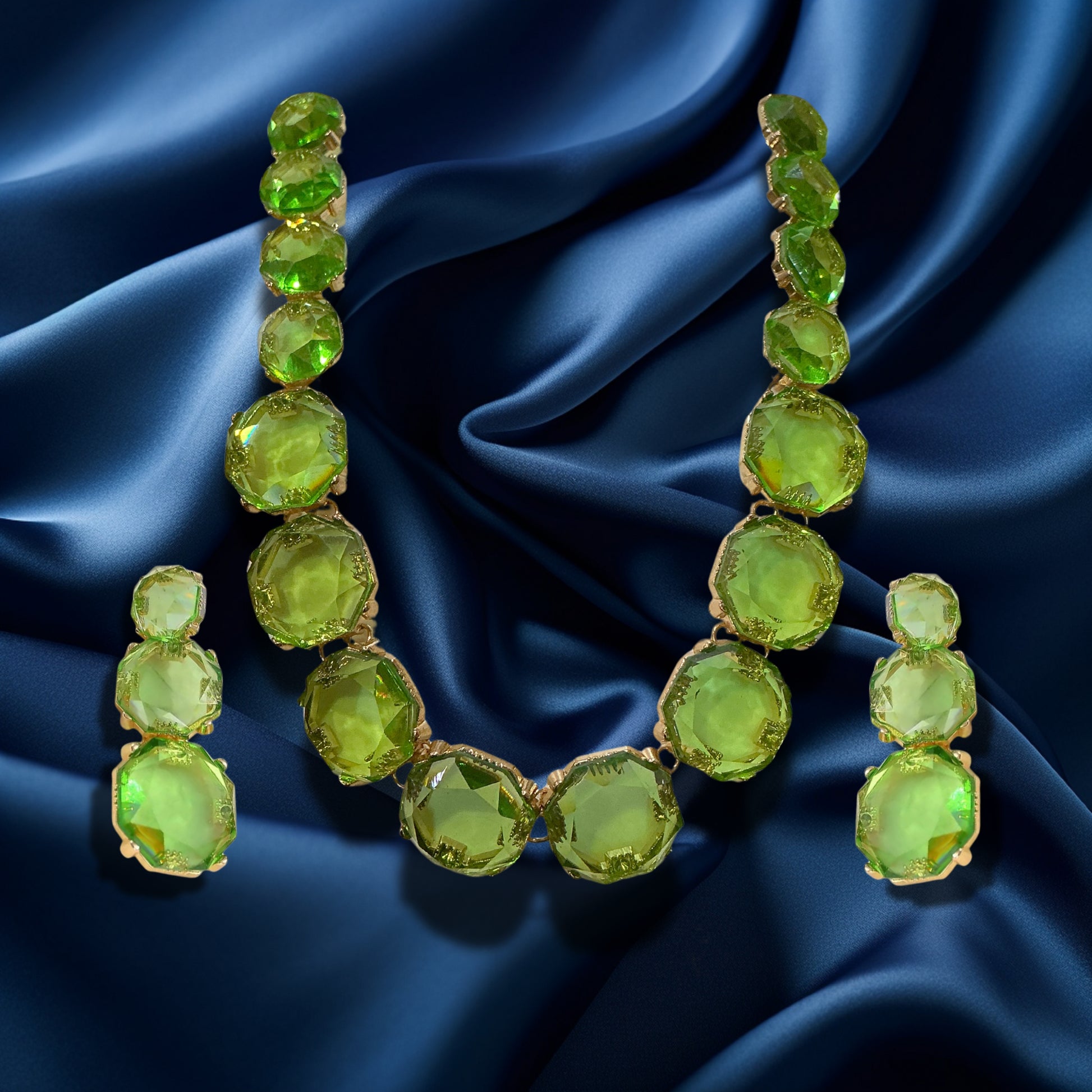 Green Rhinestone Crystalline Bohemian Necklace & Earrings Set